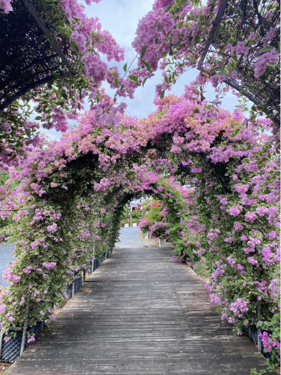 万紫千红皆为花,这便是初见古坑的惊喜。艳丽的三角梅与潺潺流淌的西源溪、闽南古厝群交相辉映,形成了“花漾古坑”文旅品牌。