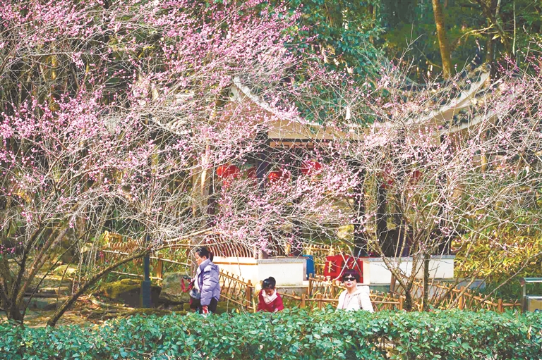 近日,蕉城区南漈公园的梅花盛开,吸引市民闻香打卡,感受满园芬芳。南漈公园倚山而建,草木葱郁、山幽水秀。每年梅花盛开之际,都会吸引不少游客慕名而来打卡游玩,寻梅影、赏梅姿、品梅韵,一睹人间“梅”好。