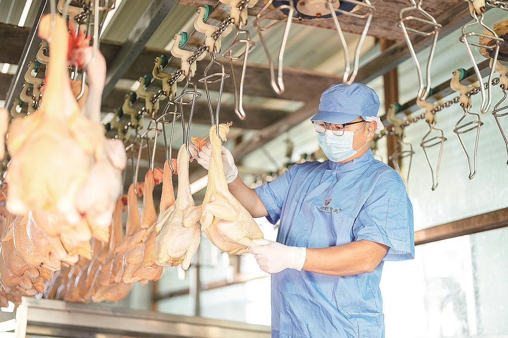 上午9点,福建省远耕食品发展有限公司的加工车间里早已一片繁忙。一楼的屠宰区内,工人握着连忠兴设计的沥血漏斗快速操作,不到5分钟,一只活鸡就完成沥血、脱毛、开膛等工序,被送入0℃的冻库。