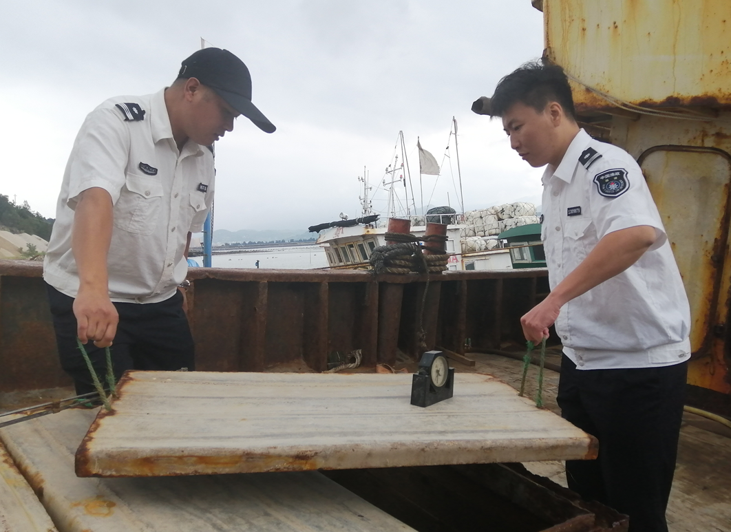 在福鼎市华福船舶拆解有限公司,霞浦县查扣的2艘涉渔“三无”船舶已停在该公司码头等待被拆解,县海洋渔业局执法大队工作人员正对这两艘船进行现场勘验。据了解,“三无”船舶是指无船名船号、无船舶证书、无船籍港的船舶,而其中从事渔业捕捞行为的即为涉渔“三无”船舶,“三无”船舶涉渔生产属违法行为。