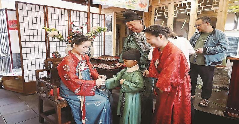 游客在邵武市水北街道太保路文化墙打卡点观赏、阅览