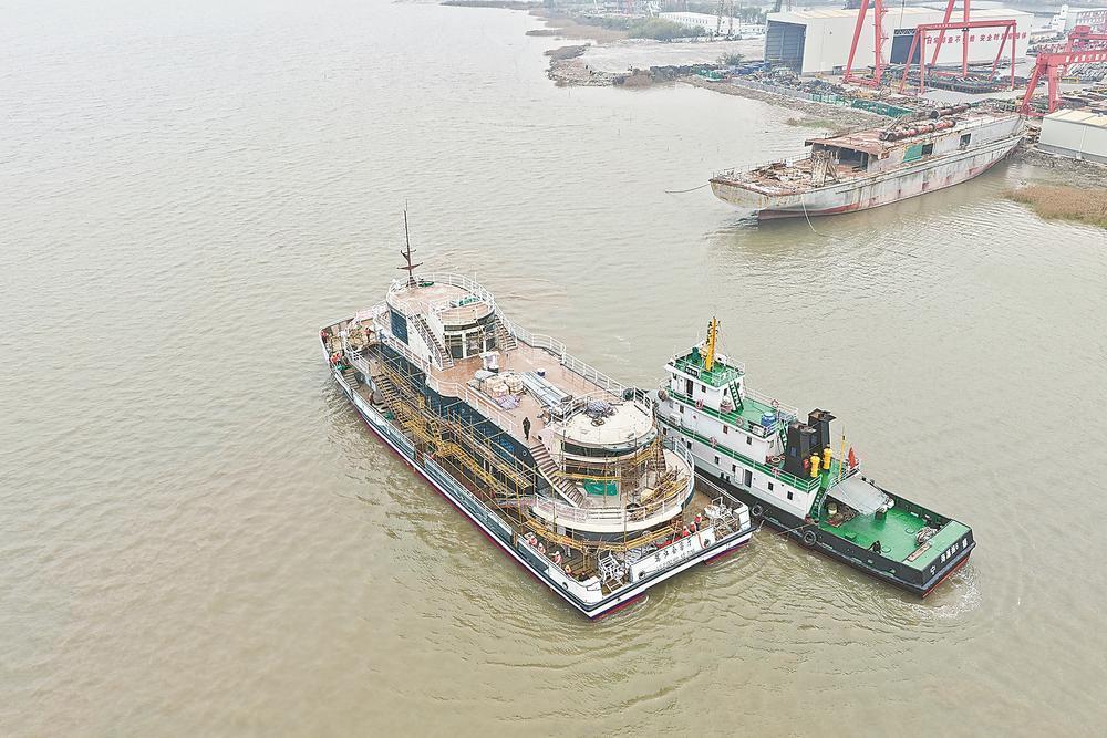 23日,由福建福宁船舶重工有限公司承建的高端新能源游船“鹭江会客厅”在福安顺利下水。