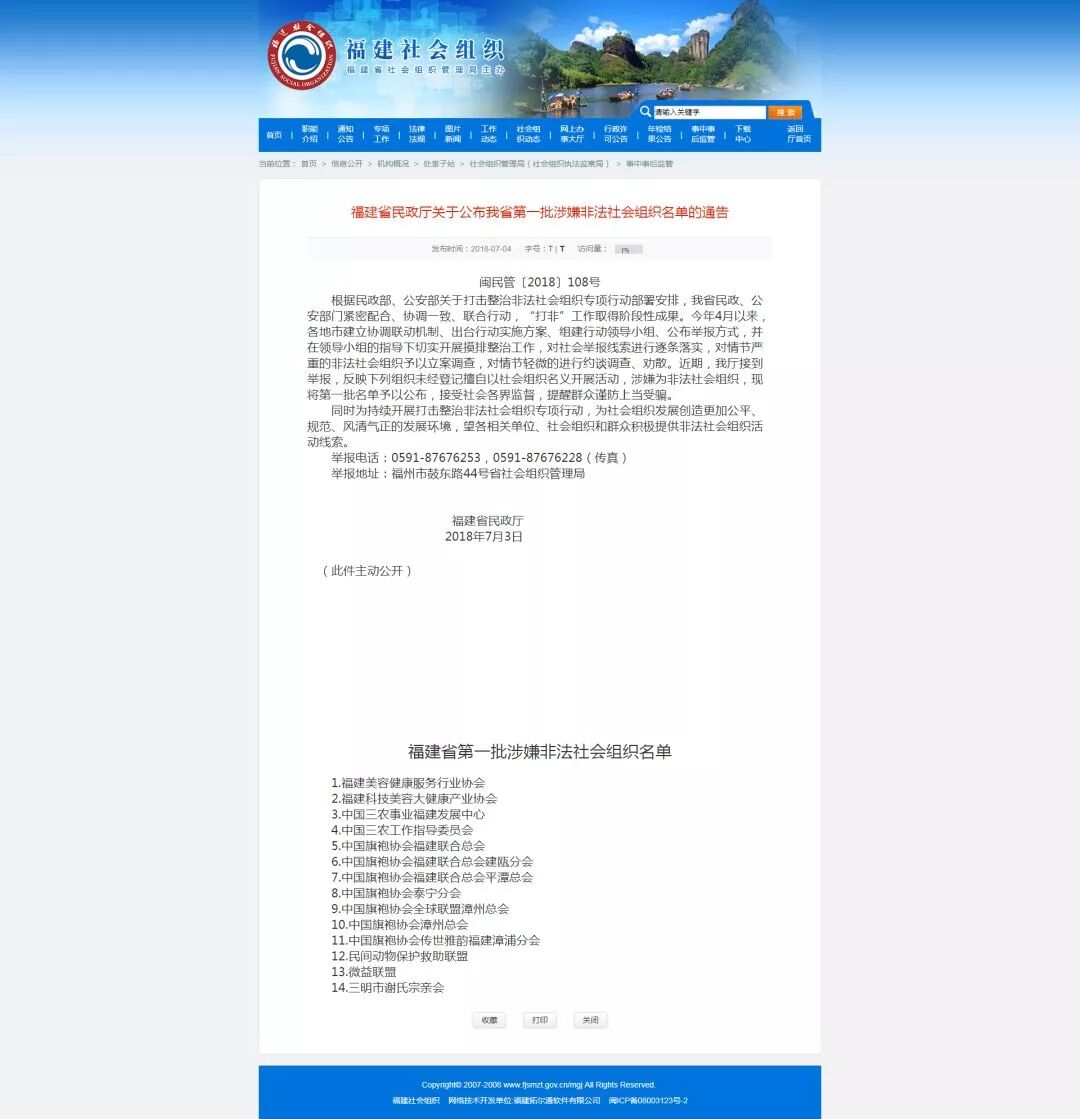 附:福建省民政厅关于公布我省第一批涉嫌非法社会组织名单的通告