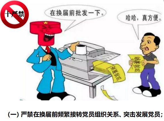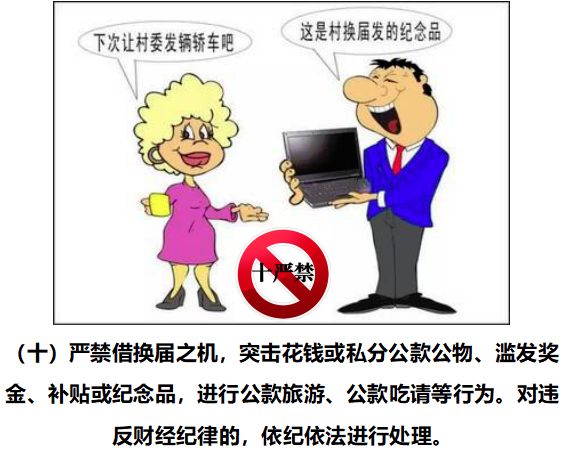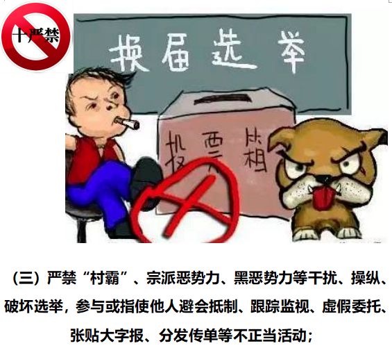 为严肃村级组织换届纪律,营造风清气正的换届环境,武平县村级组织换届选举领导小组办公室制定了“十严禁”“十不准”,这些都是换届选举的“高压线”,您千万不能触碰!接下来,请跟随漫画一起了解“十严禁”有哪些内容: