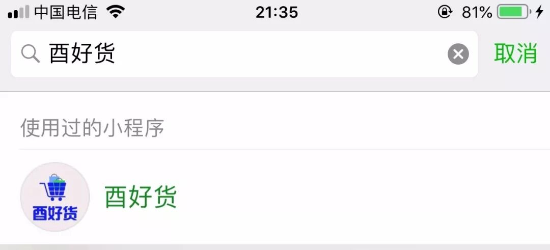 第一步:点击微信上方搜索栏,输入“酉好货”,选中“酉好货”小程序;