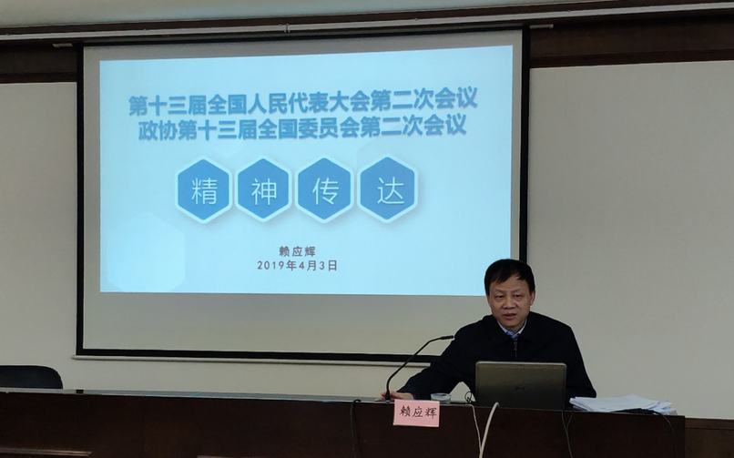 会上,赖应辉局长结合参加全国两会的亲身经历和切身感受,向与会人员详细介绍了两会概况、部分界别协商情况及委员履职情况,传达学习了习近平总书记在全国两会期间六下团组的重要讲话精神、政府工作报告和全国人大常委会报告、“两高”报告以及外商投资法相关内容,脉络清晰、内容丰富,引导干部更好地领会把握全国两会精神,有力推动两会精神在省粮储局落地落实。