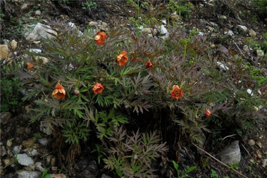 生长在云南香格里拉山坡石缝中的野生牡丹。图片由中国农科院供图