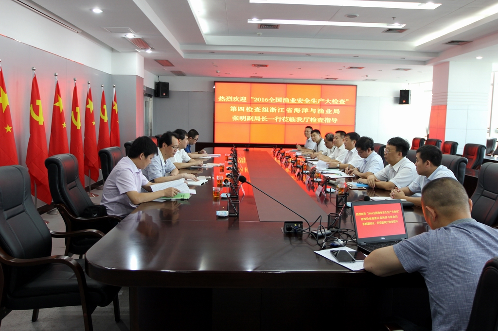 7月28日-29日,农业部“2016全国渔业安全生产大检查”第四检查组在浙江省海洋与渔业局张明副局长率领下,一行四人莅临我省检查指导渔业安全生产工作。钟声副厅长和厅安委会相关成员单位主要负责人参加了检查汇报会。