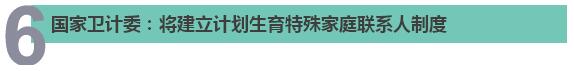 近日,卫计委发布《关于建立和完善计划生育特殊家庭联系人制度的通知》,计划生育特殊家庭,即独生子女伤残、死亡家庭。《通知》要求,联系对象发生意外、重病、受灾、亡故等重大情况时,联系人要及时上门,帮助排忧解难;逢重要传统节日,要以联系对象易于接受的方式开展慰问和关怀工作。通知提出,为每一户计划生育特殊家庭确定一名乡镇(街道)领导干部和一名村(居)委会干部作为帮扶“双岗”联系人。通知明确,乡镇(街道)要为每户计划生育特殊家庭建立基本信息档案。