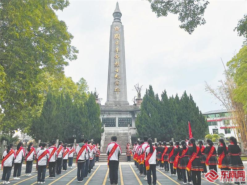 福安市民族中学学生在闽东革命烈士陵园举行纪念活动。 福建日报 朱子微 摄
