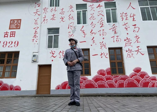 一名讲解员在古田“红军小镇”讲解。新华社 林超 摄
