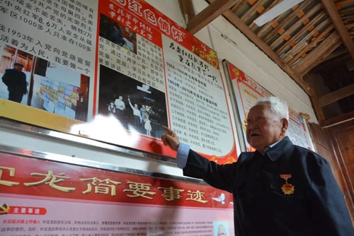 长汀县长窠头村村民钟宜龙在介绍自己举办的红色家庭展。新华社 林超 摄