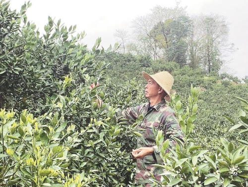“今年柑桔树的花芽比较饱满,你看这三个一堆、两个一堆的,看着很喜人。”伴随着山谷的鸟鸣声,余安增在柑桔地里忙活。