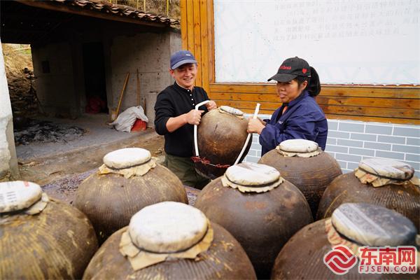 黄远光夫妇告诉记者,岭下村有酿酒的传统,几乎家家户户都有酿酒的手艺,米酒酿造技艺已入选三明市级非物质文化遗产。如今,“岭红”米酒在泰宁已经小有名气,村子也从20年前的薄弱村摇身一变成为网红“米酒小镇”。
