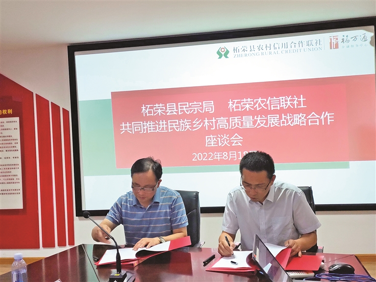 柘荣县农信联社与柘荣县民宗局共同签订了推动民族乡村高质量发展战略合作协议
