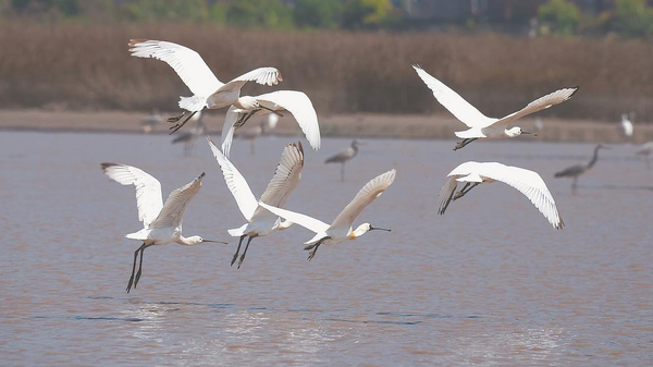 宁德霞浦福宁湾迎来黑脸琵鹭和白脸琵鹭