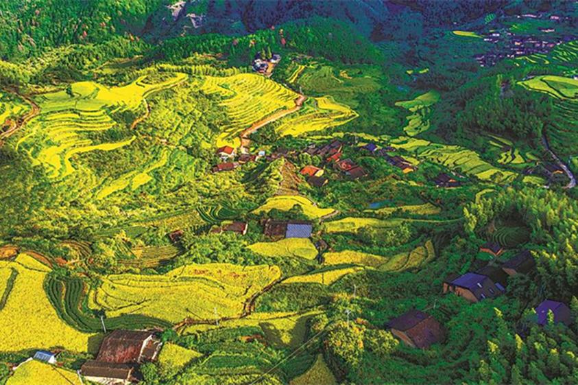 武夷山市吴屯乡后源村千亩梯田稻浪滚滚
